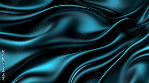 © Neungruedee, Obraz premium Flowing Teal Fabric Texture with Rich Blue Tones in High Resolution