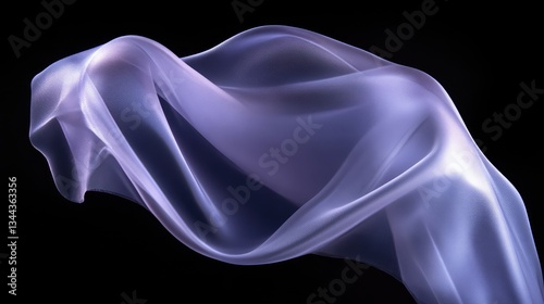 © PAPAHJAHATZ, Fototapeta premium Flowing, translucent fabric against black background. Fluid, soft curves