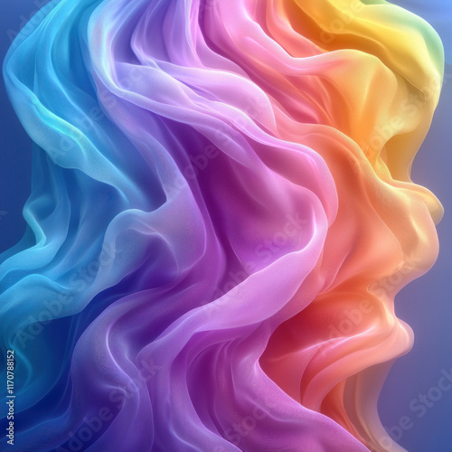 © AbdulHakim, Fototapeta premium Flowing, vibrant rainbow colored fabric on blue.