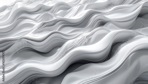 Obraz premium 流れる波形パターン - 有機的なモノクロ背景, Flowing Wave Pattern - Organic Monochrome Background