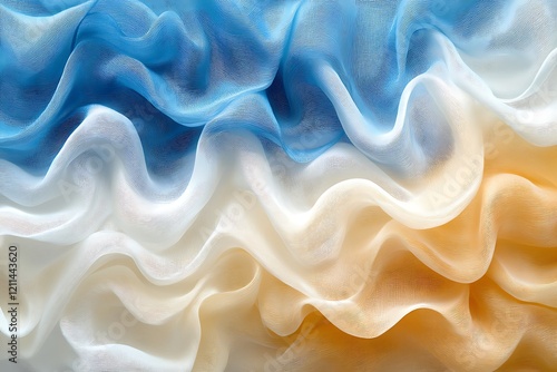 Obraz premium Flowing waves of blue, white, and yellow fabric create a soft and elegant...