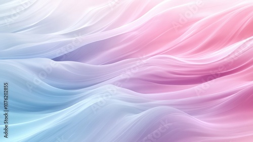 Fototapeta premium Flowing waves of soft pastel colors in shades of pink and blue create a...