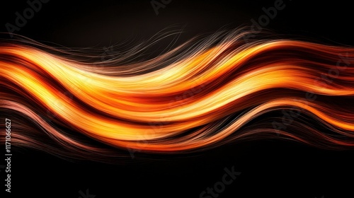 © KKC Studio, Obraz premium Flowing Waves of Vibrant Orange and Black Hair on Dark Background