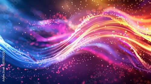 Obraz premium Flowing wavy lines in vibrant blue to purple gradient with sparkling particles