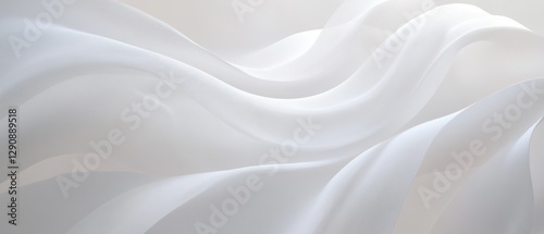 Fototapeta premium Flowing white fabric background, soft waves of silk, elegant texture for design, light and airy aesthetic, abstract composition for product display.