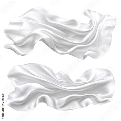 Obraz premium Flowing white fabric drapes studio textile art neutral background aesthetic...