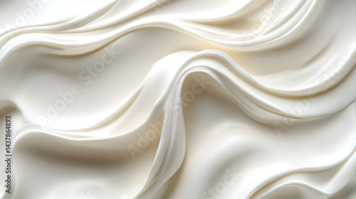 © Ganesha88, Fototapeta premium Flowing white satin fabric studio setting textural photography soft light horizontal perspective