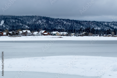 Fototapeta premium Flozen Lake, Climate Change at Southern California, Big Bear Lak
