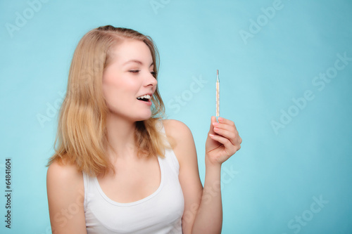Obraz premium Flu. Sick girl holding thermometer. Health.
