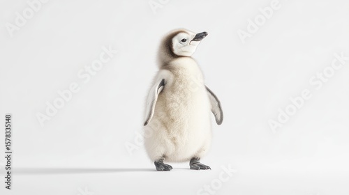 © AGIL, Naklejka premium Fluffy baby penguin against white background