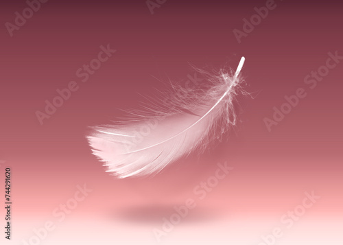 Obraz premium Fluffy bird feather falling on color background