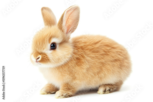 © MSTKolpana, Obraz premium fluffy brown rabbit standing isolated on white