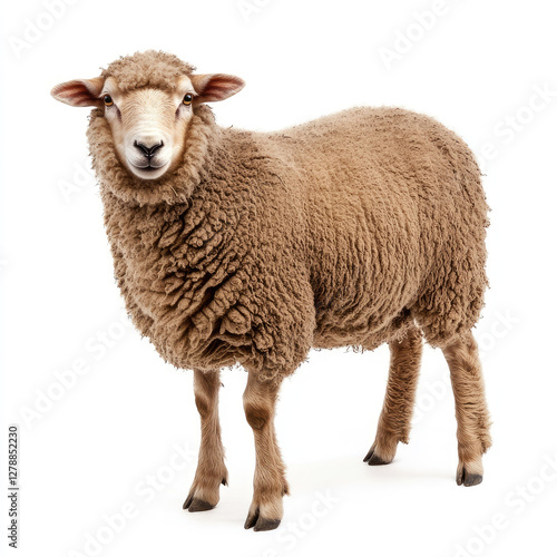 © Napaporn, Fototapeta premium Fluffy brown sheep standing on white background