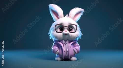 Naklejka premium Fluffy bunny dons a cozy sweater and a pair of tiny glasses, giving it an...