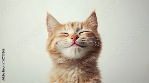 © simba kim, Obraz premium fluffy cat winks on light gray background, Generative AI