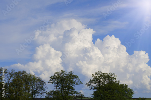 Obraz premium Fluffy clouds, bright summer photo.