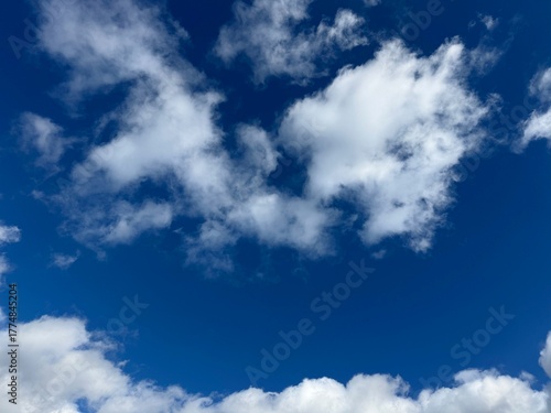 © OLENA LIALINA, Obraz premium Fluffy clouds in the blue sky.
