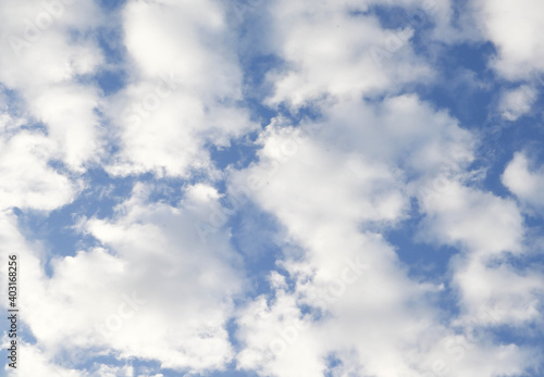 © Saowaluck, Naklejka premium Fluffy clouds in the clear blue sky of sunny morning - background concept