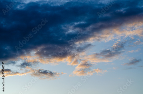 © Сергей Михайлов, Obraz premium Fluffy clouds with dark shadows at sunset