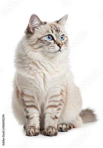 © sablon, Obraz premium Fluffy Cream Tabby Cat with Striking Blue Eyes Pets Adorable Animals