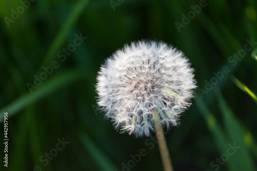 © Александра Докучаева, Fototapeta premium Fluffy dandelion ball close view