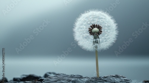 Obraz premium Fluffy dandelion on rocks, soft light