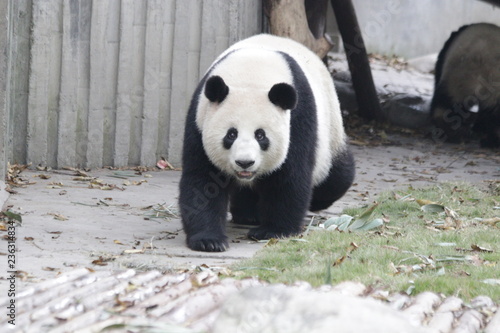 Fototapeta premium Fluffy Female Panda exploring her Area, Chengdu, China