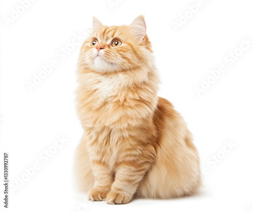 © Mind, Fototapeta premium Fluffy Ginger Cat Sitting on White Background