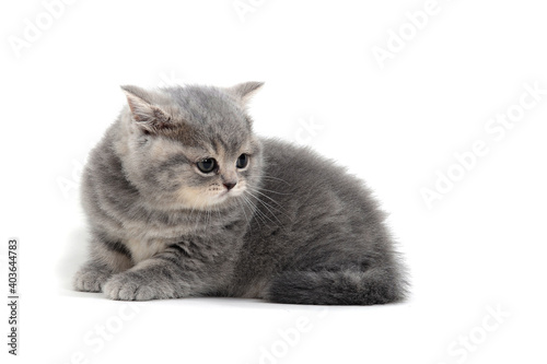 © Евгений Порохин, Obraz premium Fluffy gray kitten on a white background