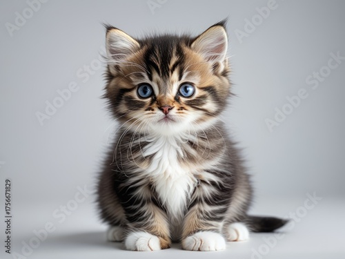 Fototapeta premium Fluffy kitten with striking blue eyes, adorable pose
