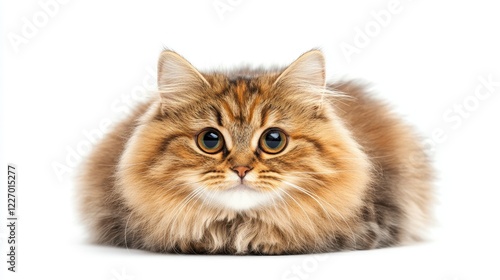 Obraz premium Fluffy longhair cat sits, facing camera. Perfect for pet product ads,...