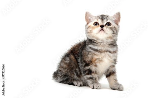 © Евгений Порохин, Obraz premium Fluffy purebred gray kitten on a white isolated background