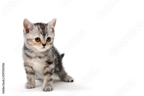 Obraz premium Fluffy purebred gray kitten on a white isolated background