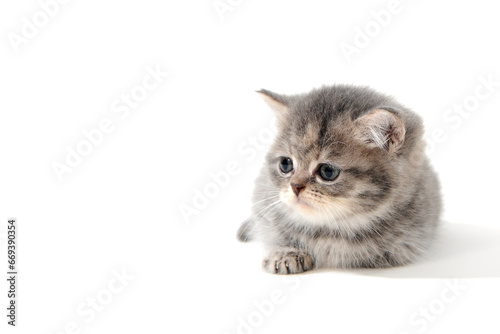© Евгений Порохин, Obraz premium Fluffy purebred gray kitten on a white isolated background