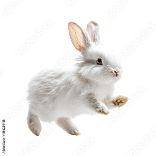 © Png, Fototapeta premium Fluffy Rabbit Hopping with Long Ears Isolated on Transparent Background