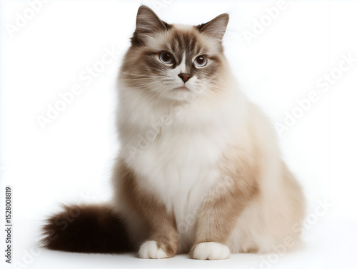 © agungmujtaba, Fototapeta premium Fluffy Ragdoll Cat Sitting On White Background
