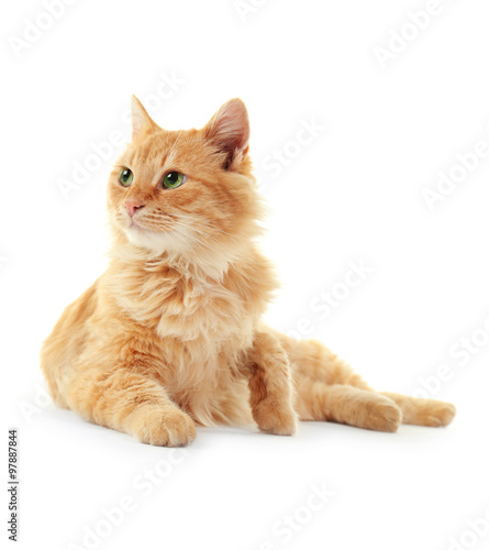 © Africa Studio, Fototapeta premium Fluffy red cat cleans itself isolated on white background