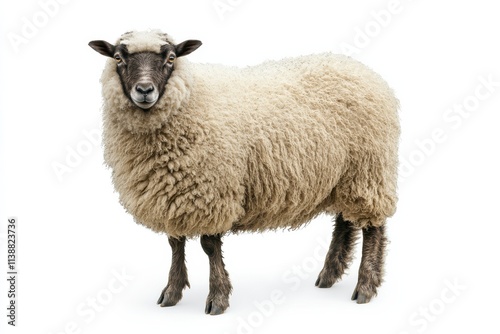 Obraz premium Fluffy sheep against white background