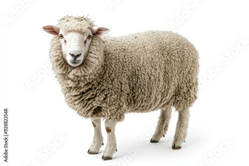 © Constantinos, Obraz premium Fluffy sheep standing against white background