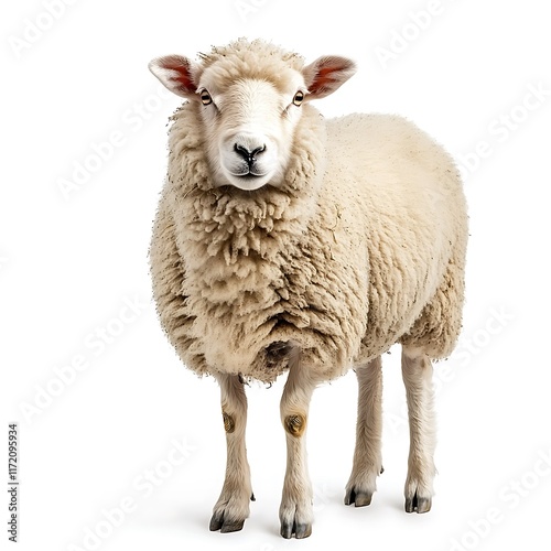 © ardanz, Fototapeta premium Fluffy sheep, studio shot, white background, farm animal.