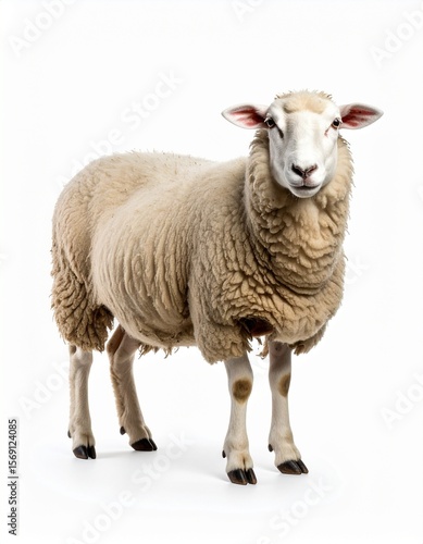Naklejka premium Fluffy Sheep Studio Shot White Background Farm Animal.