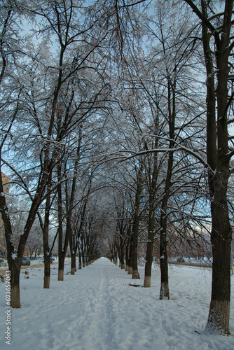 © Oleg Zhukov, Fototapeta premium Fluffy snow on the trees