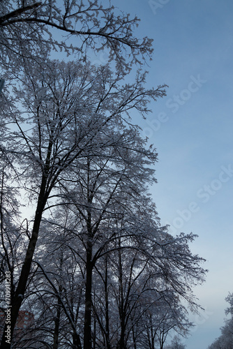 © Oleg Zhukov, Fototapeta premium Fluffy snow on the trees
