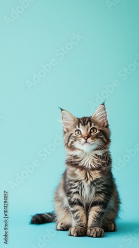 © Felix, Obraz premium Fluffy Tabby Kitten on Blue Background
