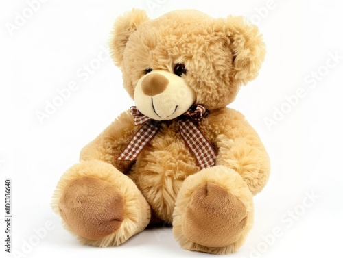 © Hitam Putih, Obraz premium Fluffy Teddy Bear on White Background