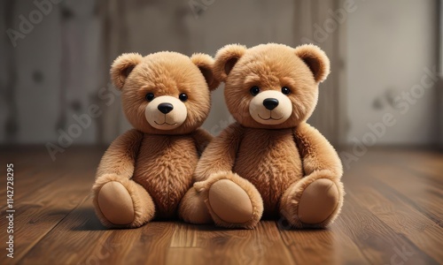 © photohappy, Obraz premium Fluffy teddy bear sits on polished wood surface, white, sweet