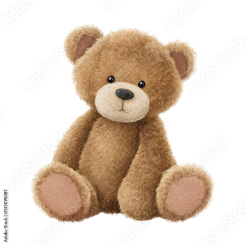 © Purichaya, Fototapeta premium Fluffy teddy bear sitting with a soft expression, showcasing its round ears and stitched features. transparent background