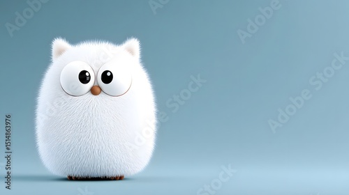 Obraz premium Fluffy white cartoon cat toy with large eyes, adorable 3D rendering