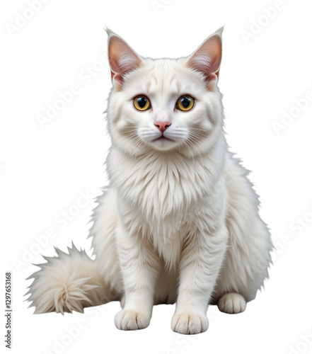 © NgoHong, Obraz premium Fluffy White Cat with Yellow Eyes, Transparent Background