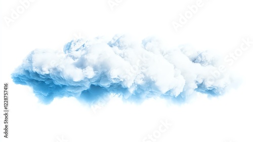 Fototapeta premium Fluffy white cloud with soft blue edges, hovering in the sky against a crisp white background, perfect for nature-themed designs and environmental concepts.